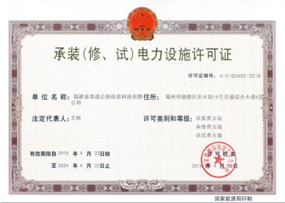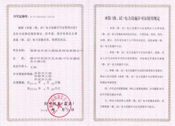 日前,我司電力承裝(修、試)五級(jí)資質(zhì)獲批,該資質(zhì)的取得為我司在供配電領(lǐng)域拓展奠定了基礎(chǔ)。
