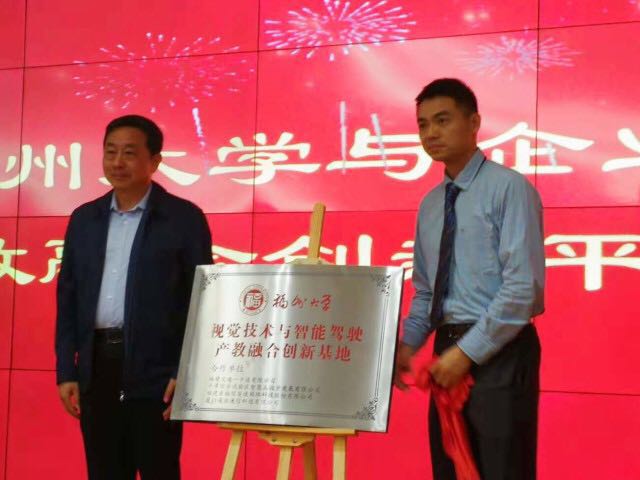 10月14日,由我司與福州大學(xué)共建的“視覺技術(shù)與智能駕駛產(chǎn)教融合創(chuàng)新基地”揭牌儀式在福州大學(xué)舉行。我司王輝董事長(zhǎng)與福州大學(xué)物理與信息工程學(xué)院學(xué)科帶頭人陳志峰教授共同揭牌。