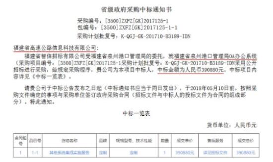 2018年4月3日,我司參與投標(biāo)的“福建省泉州港口管理局OA辦公系統(tǒng)項目”順利中標(biāo)。