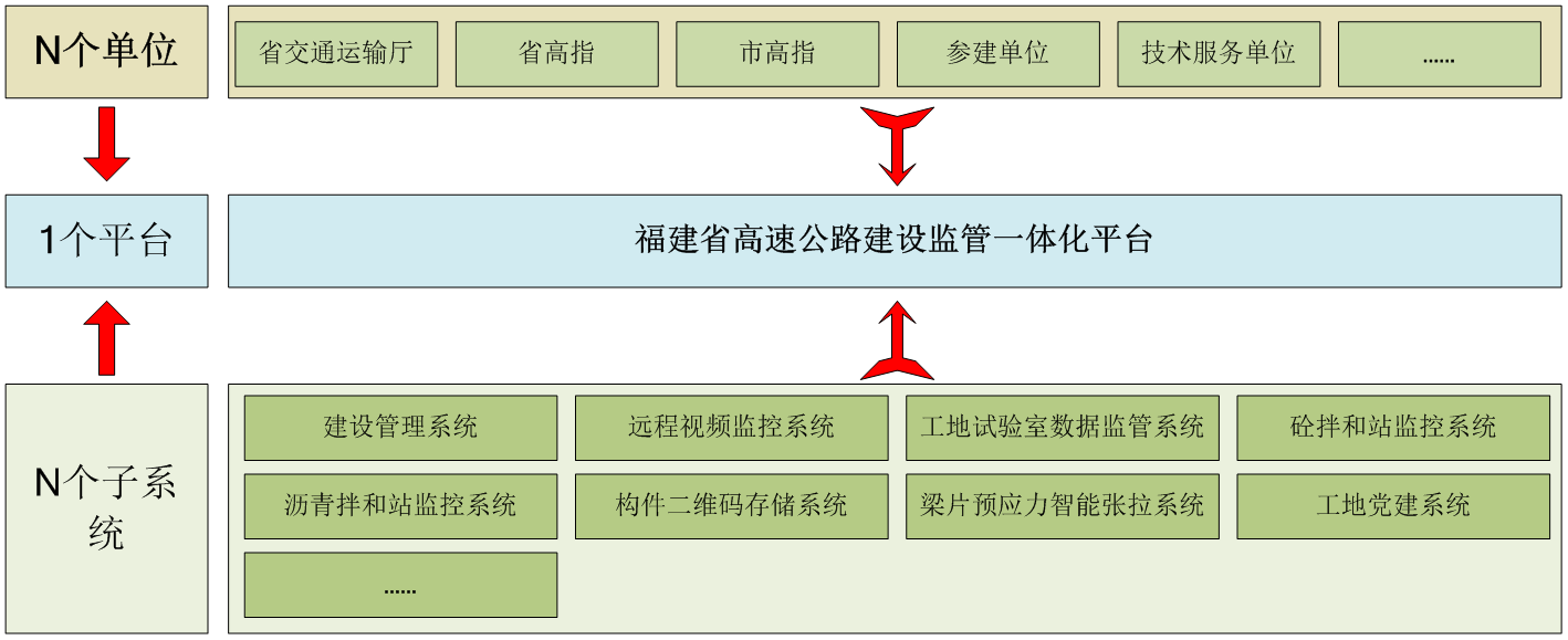 工程建設(shè)監(jiān)管一體化平臺以1+N+N為體系結(jié)構(gòu),即1個平臺、N個系統(tǒng)、N個應(yīng)用單位,采用云計算、大數(shù)據(jù)、物聯(lián)網(wǎng)及云+端技術(shù)架構(gòu),實現(xiàn)一體化監(jiān)管、實時監(jiān)管、移動監(jiān)管以及建管養(yǎng)一體化應(yīng)用等,具有“實時預(yù)警、智慧管控、建養(yǎng)一體、移動應(yīng)用、黨建統(tǒng)領(lǐng)、系統(tǒng)融合”等特色,全面提升了工程建設(shè)質(zhì)量,實現(xiàn)工程建設(shè)“一體化、數(shù)字化、智能化、可視化”的目標。